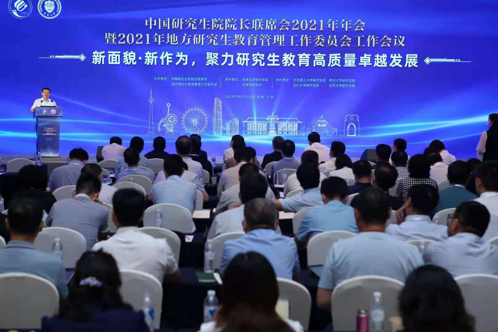 本报讯(通讯员焦德芳 记者陈曦 受访者供图)7月23日,中国研究生院院长联席会2021年年会暨2021年地方研究生教育管理工作委员会工作会议在天津开幕。此次会议是中国研究生院院长联席会年会、地方研究生教育管理工作委员会工作会议、学位授予信息报送工作会三个会议首次联合召开。全国近140所联席会会员单位的高校研究生院院长,以及各省市研究生教育管理部门负责人济济一堂,共商深化研究生教育改革发展。