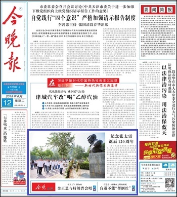 (《今晚报》 2018年6月12日 头版)