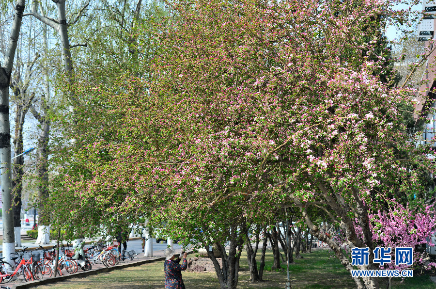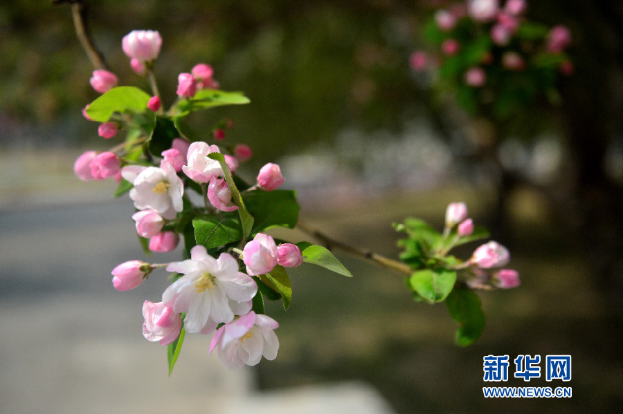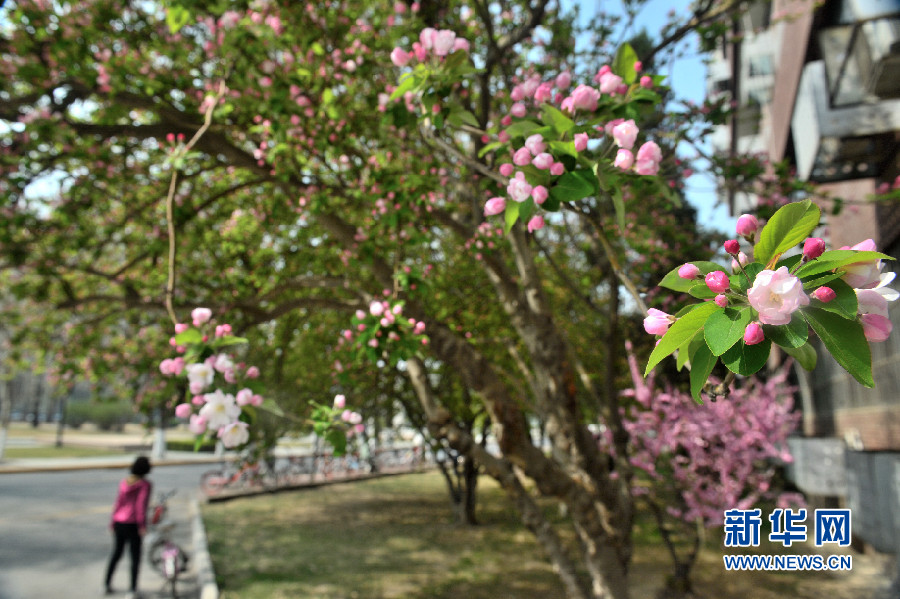 天津大学内的海棠花在春风中摇曳,淡淡袭人醉。新华网发(总汇 摄)