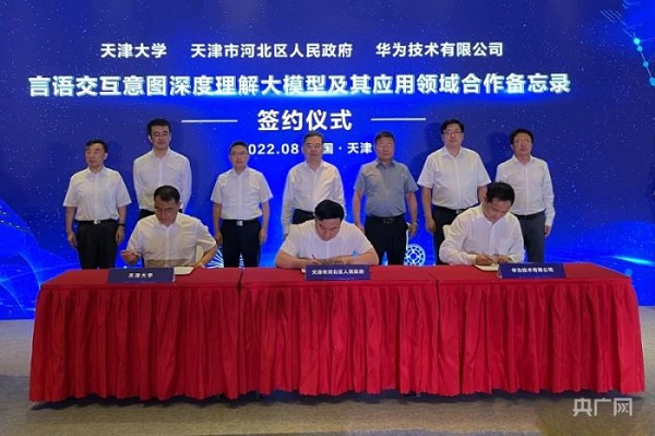 央广网天津8月11日消息(记者 周思杨 刘阳)8月10日上午,“海河·谛听”言语交互意图深度理解大模型科研合作项目签约仪式在天津市河北区成功举行。会上,天津市河北区人民政府、天津大学与华为技术有限公司联合签署合作备忘录,将通过深入合作为人工智能基础理论技术创新提供支持,为科研人才集聚提供保障,为模型成果转化提供场景,为加快人工智能产业发展贡献力量。