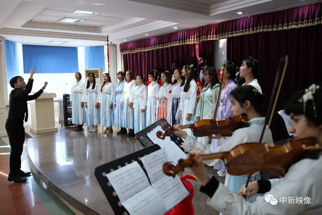 1月4日,天津大学国际教育学院来自俄罗斯、加拿大、马来西亚、越南等国家的留学生为迎接中国农历新年,身穿汉服排练“校园春晚”中文合唱等节目,感受中国传统文化魅力。(中新社记者 佟郁 摄)