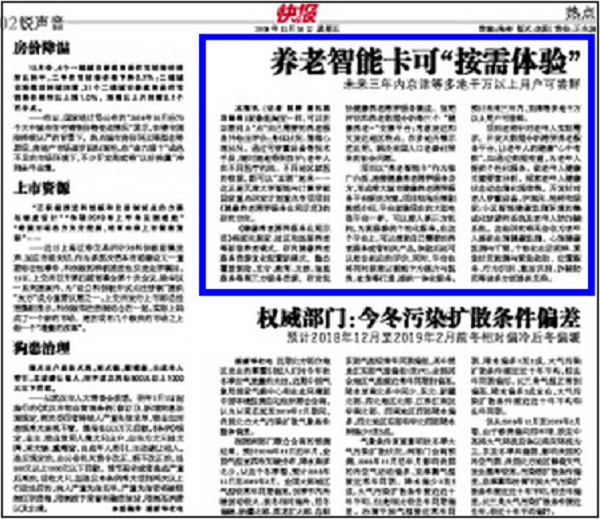 项目以“养老智能卡”作为推广介质,连接健康养老跨界服务各方,形成特大城市健康养老跨界服务平台解决方案。项目组陈世展副教授介绍,平台就像现在的大型电商平台一样,可以接入第三方机构,为客服提供个性化服务。在这个平台上,可以搜索自己需要的养老服务或者相关产品,体验后还可以给出相应的评价。同时,平台也将同时探索以智能卡为媒介与医保、社保等打通,提供一体化服务。预计未来三年内,京津等多地千万以上用户可尝鲜。