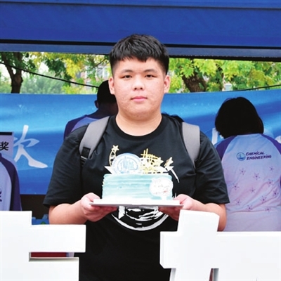天大新生杨天睿收到生日蛋糕。