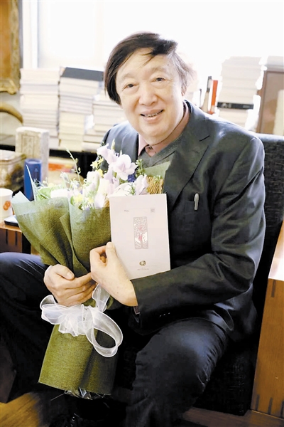 图为冯骥才在生日当天收到新一期《大树》院刊。
