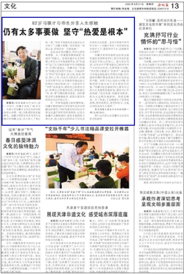 冯骥才更希望能把这份紧迫感传递给老师和同学们,把对未来的重托放在年轻人的肩上。他与师生们讲,求学治学不要考虑自己的研究对个人有什么好处,而要考虑大问题,“我们努力要建立‘非遗学’,就是因为非遗还面临着太多现实问题,而非遗的问题归根结底是中国文化命运的问题。如果不关心这些大问题,你做的研究就永远不会有更高的价值。”冯骥才还告诫同学们,要有自己的人生角度和价值标准,要坚守心中的热爱,“没有热爱,你就容易放弃,把人生过得支离破碎。热爱是根本。有了热爱,才会慢慢有了更多的思想,更多的责任,更多的担当,才能达到更高的人生境界。”