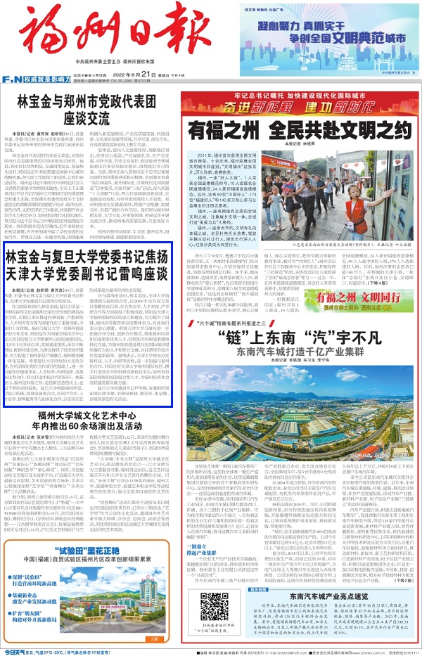 福州日报:林宝金与复旦大学党委书记焦扬 天津大学党委副书记雷鸣座谈 (fznews.com.cn)