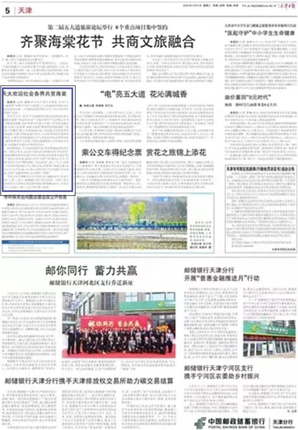 本报讯(记者 姜凝)昨天从天津大学获悉,今年“天大·海棠季”主题为“花开又相逢”,天大校园将为师生校友和社会各界呈现一个完整的海棠花期,并于4月5日举办校园开放日活动。