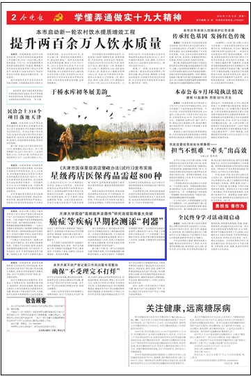 本报讯 (记者江珊)生物芯片被科学界预言为“21世纪产值最大的高技术产业”,它在疾病诊疗等领域将发挥巨大作用。日前,津城科学家在该领域连续取得重大突破。提升癌症抗原浓度十万倍、精准操控细胞和微纳米颗粒……天津大学微机电系统团队日前围绕“高频超声波器件”研究的三项科技成果达到世界领先水平,有望在生物医学研究、疾病早期诊断等领域提供更有效的技术支撑。
