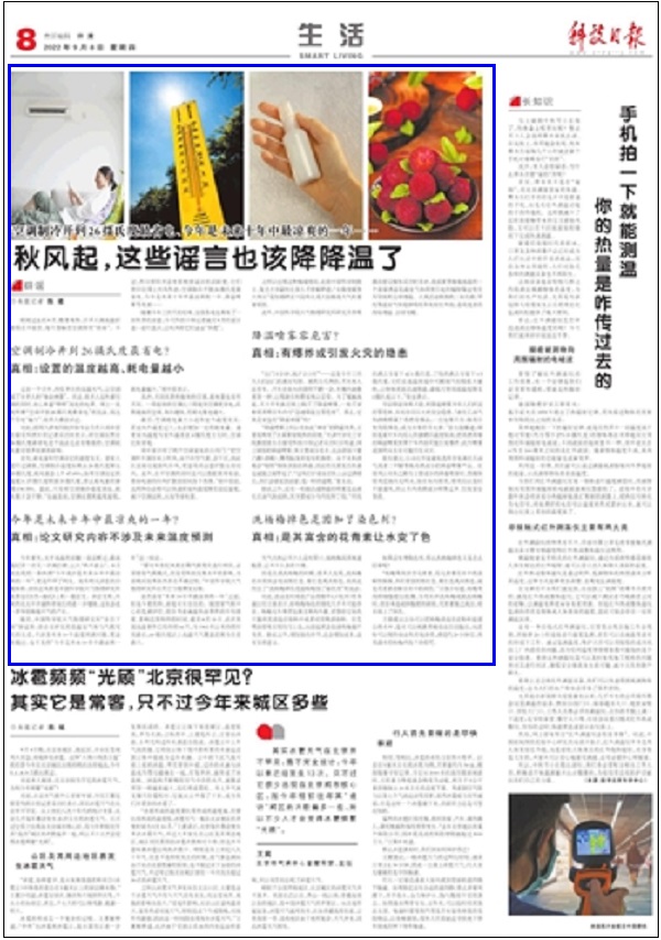 刚刚过去的8月,酷暑难熬,许多人被高温折磨得苦不堪言,每天靠躲在空调房里“续命”。不过,烈日骄阳并没有影响到谣言的活跃度,它们依旧在网上兴风作浪:空调制冷开到26摄氏度最省电、今年是未来十年中最凉爽的一年、降温喷雾零危害……