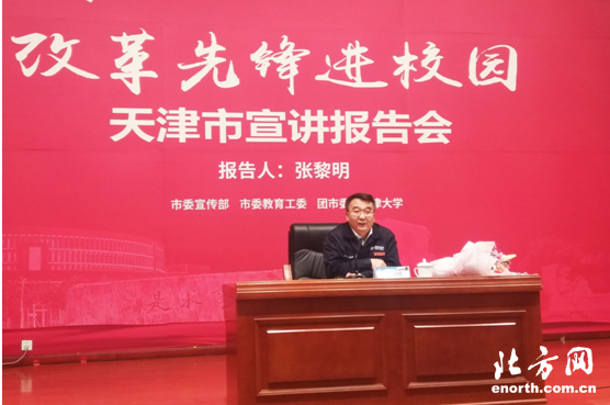 天津北方网讯:1月10日,由天津市委宣传部、市委教育工委、团市委、天津大学联合主办的“改革先锋进校园”天津市宣讲报告会在天津大学举行。国网天津电力滨海供电公司黎明共产党员服务队队长张黎明走上报告台,以《走好改革路 创新向未来》为题,与本市14所高校的师生分享了自己在庆祝改革开放40周年大会上作为“改革先锋”接受表彰的心得与体会。围绕“历史与舞台”“劳动与奋斗”“创新与价值”“传承与未来”四组关键词,张黎明畅谈了在大会上聆听习近平总书记重要讲话后的所思所想,并结合个人工作经历表达了坚定走改革开放之路,做创新型一线劳动者的决心。