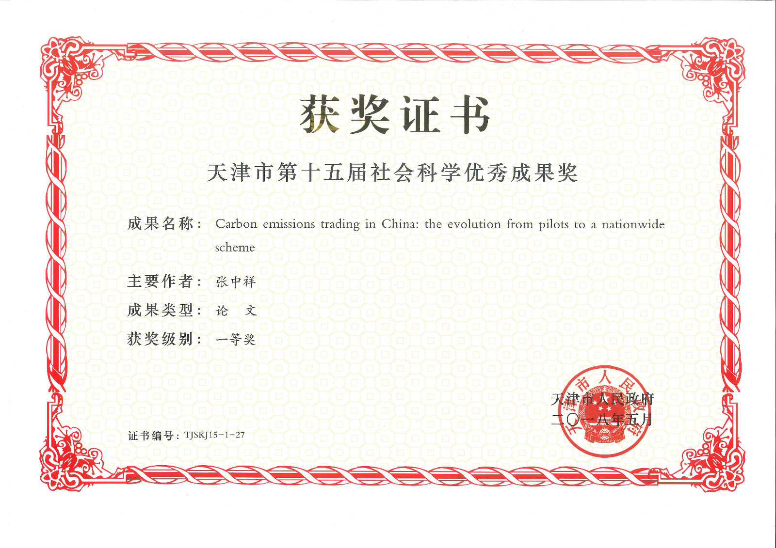 中国社会科学网讯(记者黄亚楠)近日,天津大学马寅初经济学院院长、国家能源、环境和产业经济研究院院长张中祥教授2015年发表在Climate Policy期刊上的文章“Carbon Emissions Trading in China: The Evolution from Pilots to a Nationwide Scheme”(中国碳排放交易:从地区试点向全国体系演变)荣获天津市第十五届社会科学优秀成果一等奖。