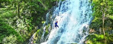 江西宜春市万载县蓝天救援队在马步乡洞口村石笏瀑布进行救援演练。邓龙华摄/光明图片