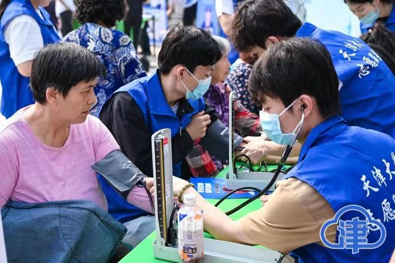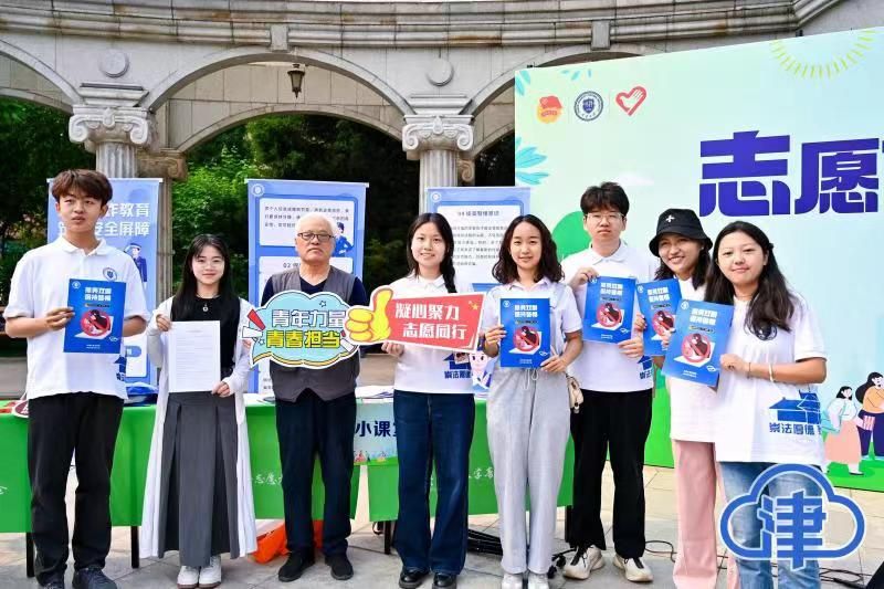 “快来瞧,天津大学把集市办到了咱社区里!”近日,在天津市和平区五大道街睦南公园,一个个志愿服务摊位交织相连,身穿“北洋蓝”的天津大学师生组成一道靓丽风景线,吸引居民游客纷纷驻足打卡。