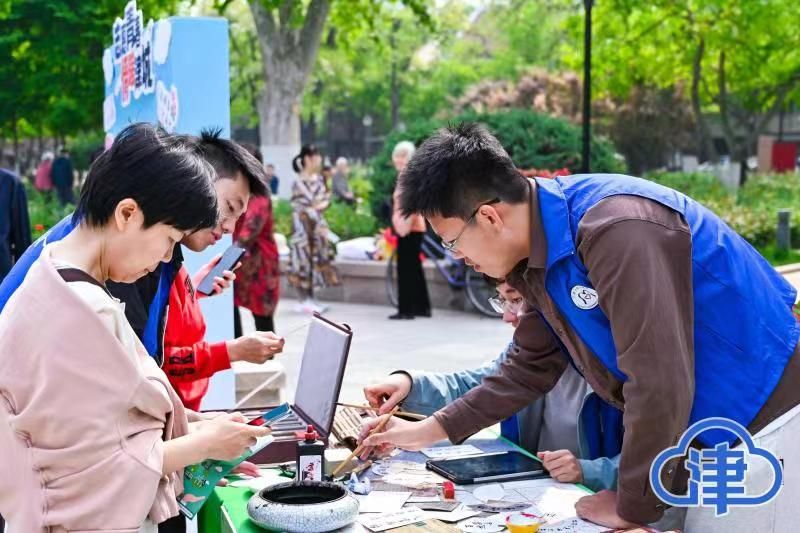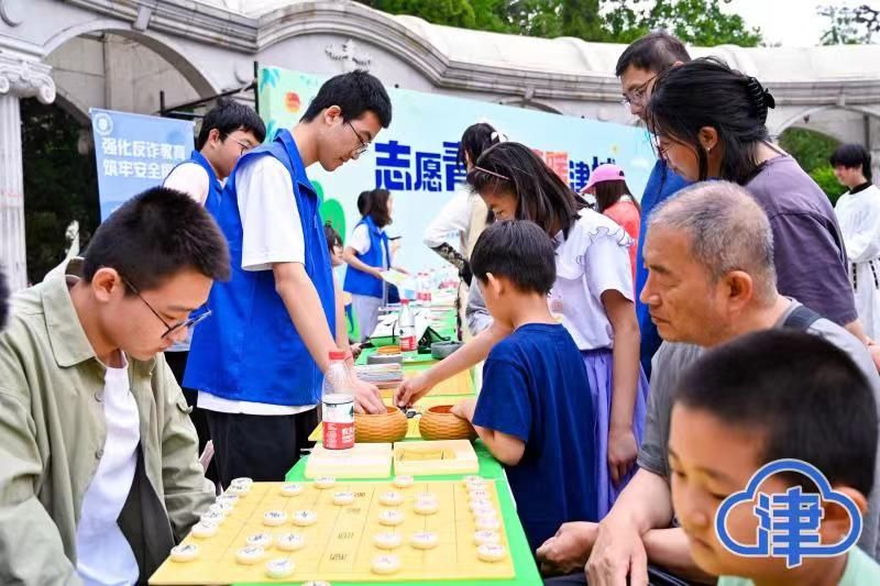 “奶奶您放松,我给您量下血压……”义诊摊位前来咨询的居民络绎不绝。天津大学青年志愿者张磊坐在老人身边,耐心叮嘱需要注意的饮食与生活习惯。记者在集市现场看到,志愿者忙碌地为居民免费测血糖测血压,发放宣传手册,普及健康知识;智能避障小车摊位前,围观的小朋友们发出阵阵惊呼,志愿者展示小车功能的同时,还不忘给小朋友科普人工智能技术的最新发展应用。“科普小课堂开到了咱家门口,让孩子们开阔了眼界,也感受到了天津大学的风采!”家长们连连称赞;天津大学新竹书画社的青年志愿者将“兴学强国”四个大字一丝不苟写在明信片上,赠与参加活动的孩子们,勉励他们好好学习、矢志报国;星河棋社的同学们摆起棋盘,陪老年朋友开启了跨越年龄的棋局博弈;汉服社展示着跨越千年的衣冠美学,传承中华民族优秀传统文化和精神内涵;天美工作室用歌声感染了整个公园;匠艺求精团队向市民展示自己设计制作的中国古建筑模型……“我们恰同学少年/心相连/携手同行/倾情奉献”天津大学青年志愿者作词作曲的志愿者之歌《心的热爱》在现场久久回响,志愿者们自主设计的卡通形象“小白杨”也吸引居民游客纷纷拍照留念。