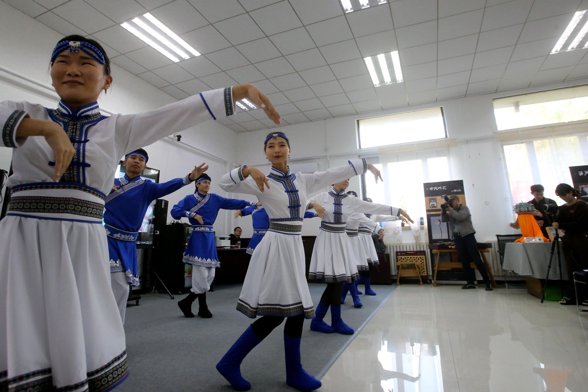 民俗体验及手工制作也是本届民俗艺术节的一大特色,中外学生欢聚一堂:潇洒的蒙古舞蹈,行云流水的古琴演奏,悠扬悦耳的戏腔吟唱,剪纸、绒花、葫芦烙画、掐丝彩砂、金石撕纸、彩蛋画等一众传承人的绝活亮相,都让师生大饱眼福。