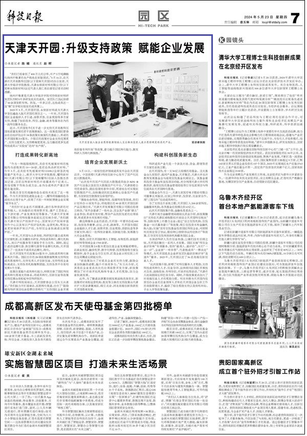 为调动科研人员的创业热情,让他们没有后顾之忧,天开园还推出一系列人才政策。园区实施“科创企业评职称”专项服务,坚持“谁用人、谁评价”,实行“一企一评”、企业家“一单举荐”、代表性成果“一票决定”等模式,为天开园重点企业研发团队提供职称评审“直通车”服务。2023年,天开园认定了56名高端创新创业人才。