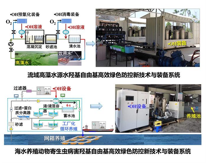 “陆海水域有害藻华与病原生物高效绿色防控的新技术装备与工程应用”项目由天津大学白敏冬教授团队牵头,揭示了羟基自由基(•OH)高效生成原位杀灭微小有害生物同时矿化有机污染物的新原理。团队研发了大气压强电离放电产生羟基自由基系列新装备,建立了羟基自由基高效绿色防控的工程技术体系,突破了陆海水域有害藻华与病原生物爆发时生物量巨大、危害大、防控难度大的国际性技术难题。该项目成果获环境保护科学技术奖一等奖、福建省科技进步奖一等奖、海洋科学技术奖一等奖等6项;该项目在入海流域,保障了高藻水源地供水卫生安全,保证了国、省控断面水质达标率100%,大幅减少陆源营养物质输入到台湾海峡、渤海海域;在近岸海域,从源头阻断了养殖动物寄生虫病的发生,三年实现约1800万亩海域未爆发大规模有毒(害)赤潮。科技成果为我国“陆海统筹”海洋生态环境保护提供了成功的范例,为建设海洋强国做出了重要贡献。