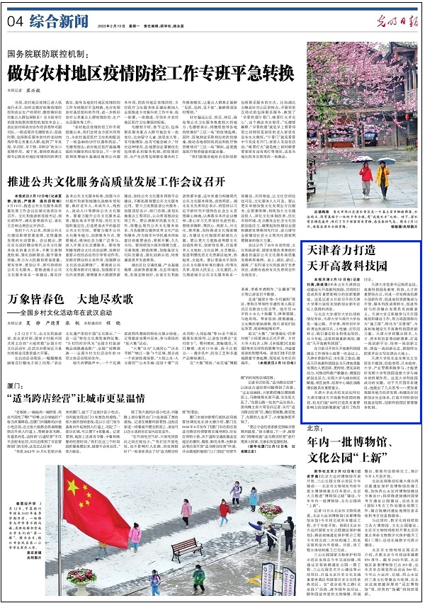 天津大学党委书记杨贤金说,高教科技园是教育、科技、人才的重要结合点,对进一步发挥高校源头创新作用、促进高校资源集成与开放、服务科技成果转化、促进科技与经济融合发展具有战略意义。天津大学正积极参与天开园规划和建设工作,努力将蓝图细化为“施工图”,转化为“实景图”,为高标准建设天开高教科技园贡献力量。天津大学将整合技术、人才、资本和信息等创新要素,打造一流创新平台、培育一流创新主体、营造一流创新生态,鼓励师生把更多论文写在津沽大地上。