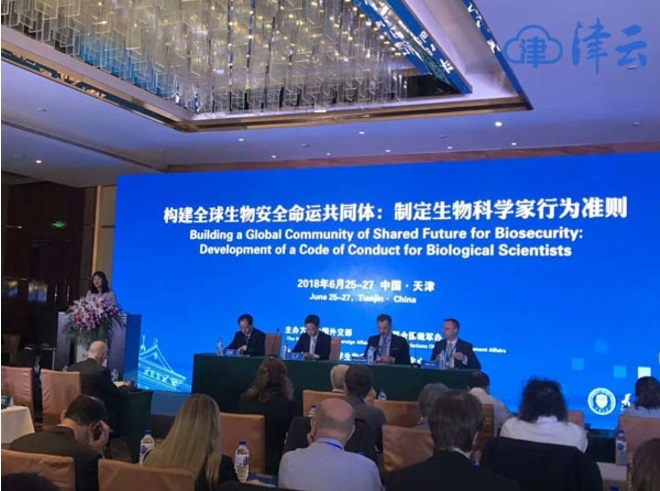 6月25日至27日,“构建全球生物安全命运共同体:制定生物科学家行为准则”国际研讨会在天津举行。本次会议由中国外交部与联合国裁军事务办公室联合举办,由天津大学生物安全战略研究中心承办。外交部军控司副司长龙舟、天津大学副校长王树新、《禁止生物武器公约》2018年缔约国会议主席格奥尔京斯基、公约履约支持机构负责人费克斯出席开幕式并致辞。中国外交部、国防部、国家卫生健康委、科技部、农业部、中国科学院、中国科协、中国军控与裁军协会等单位主管官员和专家与会。