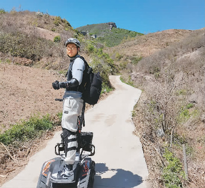 李明帅在调研中国长城遗址时驾驶全地形车。