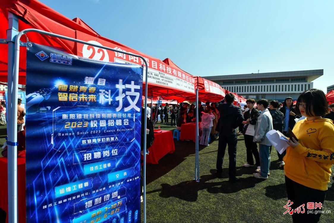 3月28日,湖南省邵阳地区2024届高校毕业生春季供需见面会在邵阳学院七里坪校区田径场举办。(毛辉摄/光明图片)