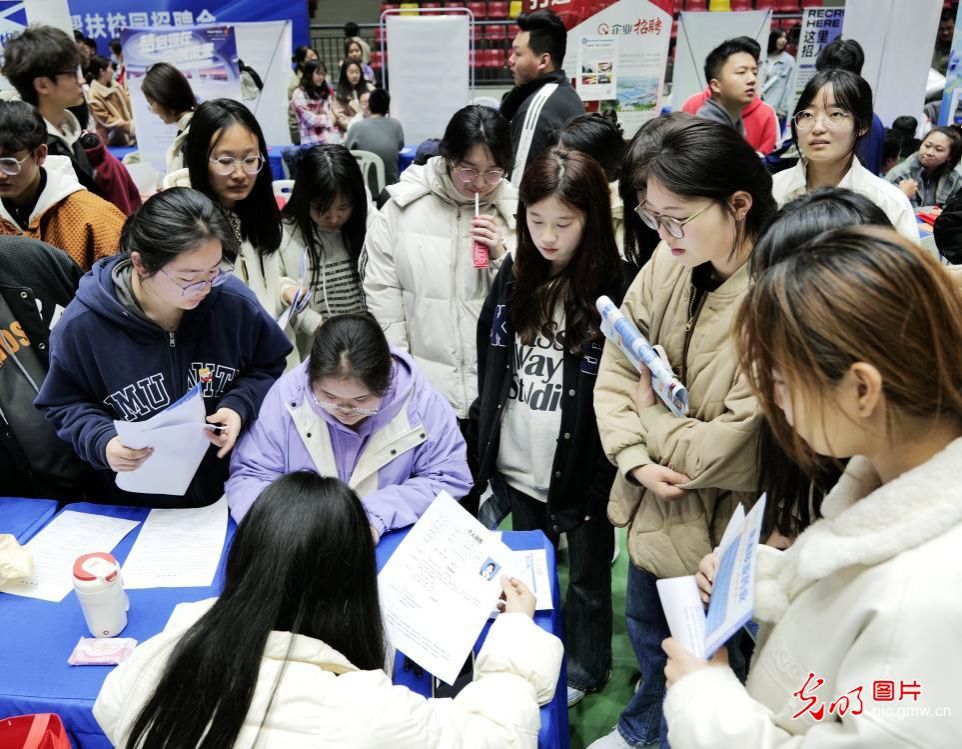 2024年3月23日,位于江西省赣州蓉江新区的赣南医科大学黄金校区,毕业生前来应聘岗位。(朱海鹏摄/光明图片)