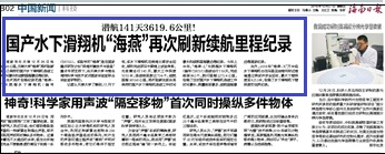 此外,2018年“海燕-X”万米级水下滑翔机也在马里亚纳海沟附近海域通过测试并安全回收,最大下潜深度至8213米,创造了水下滑翔机下潜深度的世界纪录。