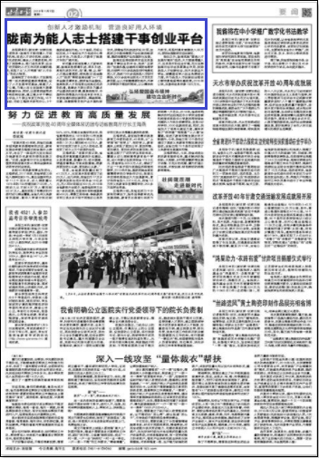 陇南制定了中长期人才发展规划等一系列激励保障政策措施,设立了人才发展专项基金,修建了人才公寓,为能人志士在陇南大展拳脚搭建平台。同时,以政策突破带动体制机制创新,建立高水平干事创业平台,2个院士专家工作站,16个省级、市级工程技术研究中心,3个国家级星创天地,13个省级、市级众创空间,8个省级生产力促进中心等众多平台,为各类人才提供了施展才华的广阔天地。