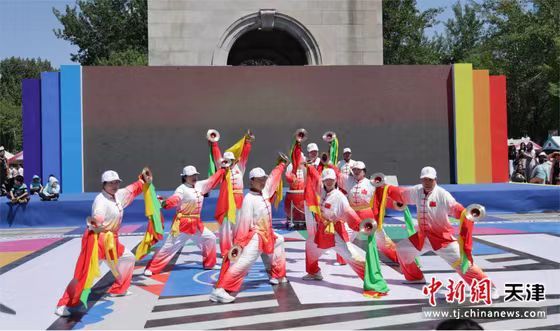 图为全国非遗汉沽飞镲表演团正在表演。(主办方供图)