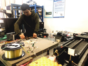 在天津大学光纤通信实验室内,信息与通信工程专业博士生马闯正在做实验。“我目前是在做有关光电振荡器方面的实验研究。”马闯告诉记者。虽然是周末,但实验室内依然忙碌着。“或许是受到杨先生的影响吧,我们也没有什么六日的概念。”马闯说。据他介绍,杨先生经常到实验室来,而实验室内的学生,杨先生大多都认识。“有意思的是,可能人名对不上,但是一说是做哪方面的实验,他就知道是谁了。”马闯说。