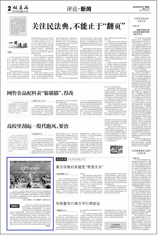 对学生心理健康的重视还需进一步加强。其中很重要的一点是,保障学生心理健康是非常专业的问题,需要专业的队伍和服务。一些学校虽然设立了心理咨询室,但往往缺乏专业的心理咨询师或心理医师,心理咨询机制不完善,使得一些学生在遇到心理问题时仍然手足无措。因此,接下来如何推进医教结合,通过专业的队伍设计专业的课程体系和培训活动,为学生提供专业的服务,值得各地思考和实践。(刘也良)