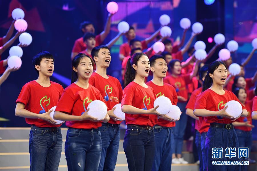 4月21日,天津大学学生在现场演唱歌曲。当日,“放飞梦想——天津大学青春歌会”在天津大学求实会堂上演。 新华社记者 李然 摄