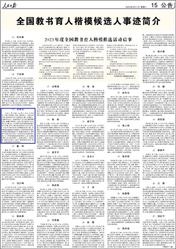 人民日报、光明日报、中国教育报刊登候选人名单及事迹简介,教育部门户网站、人民网、新华网、光明网、中国青年网、中国教育新闻网、中国教育网络电视台等开辟专题网页刊登候选人名单及事迹简介,面向社会公示,公示时间从8月7日到8月11日。