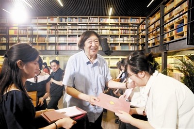 冯骥才为新生颁发录取纪念书(记者张立摄)