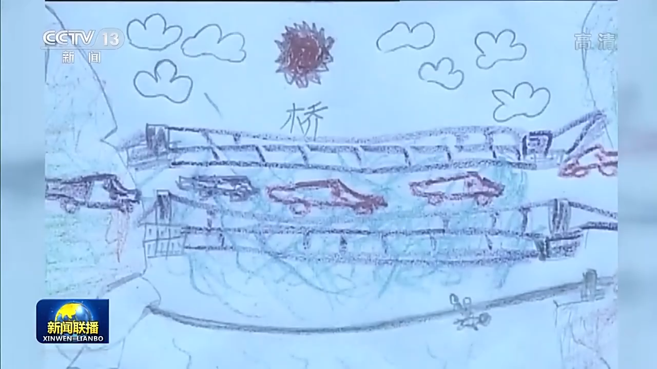 历经8年艰苦卓绝的奋斗,现行标准下9899万农村贫困人口全部脱贫!这是傈僳族少年余芬前画出的自己曾经的上学路——索道,和想象中的上学路——大桥。2018年底他的画变成了现实。
