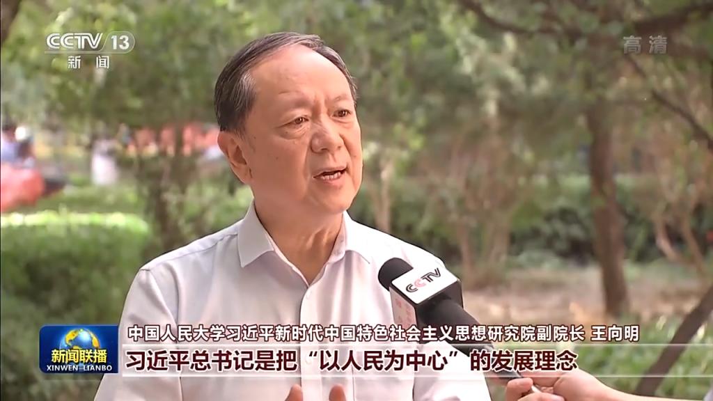 中国人民大学习近平新时代中国特色社会主义思想研究院副院长 王向明:习近平总书记是把“以人民为中心”的发展理念,贯穿到了治国理政的全过程,全面回答了我们党代表谁,发展为了谁、依靠谁,发展的成果由谁共享。答案其实就是两个字:人民。