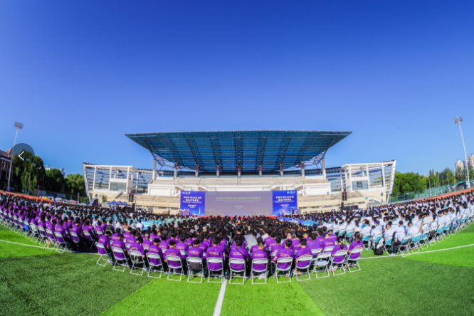 中宏网天津9月12日电 戴上“北洋盾”的校徽,高唱起“花堤蔼蔼、北运滔滔……”的校歌,天津大学13000余名2024级新生在这一天开启了他们为热爱奋斗的新征程,踌躇满志、意气风发、青春激扬。9月12日上午,天津大学2024年开学典礼在双校区同步举行。