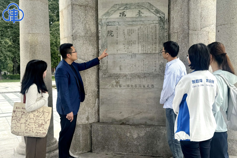 天津大学法学院薛杨教授为新生准备了一场别开生面的“中秋Walk”,在北洋广场“钦字第一号考凭”石雕前,他庄重讲述了“中国第一张大学文凭”所有者、北洋大学法科先贤王宠惠的生平故事。“薛老师还结合他参与《科学家生物安全行为准则天津指南》起草的经历,给我们上了一堂生动的涉外法治实践课.我们为天津大学牵头这份首个以中国地名命名、内容以中国倡议为主的生物安全国际倡议深感自豪,也坚定了提升参与国际法务能力、投身涉外法治建设的决心!”法学院硕士生周鸿佚说。