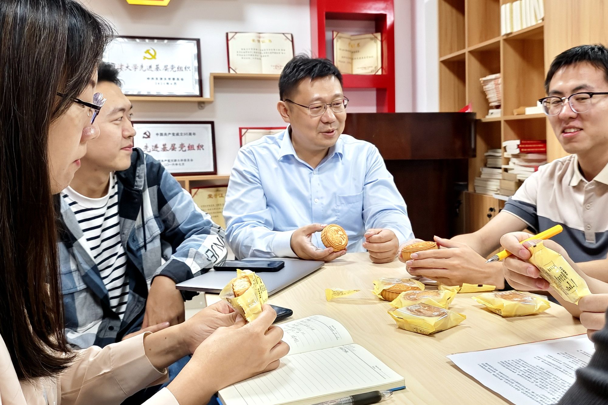 这个中秋节,天津大学的研究生导师们用亲切的团聚、甜甜的月饼温暖学子们的心田。荡漾着节日的温馨笑声,洋溢着师生的浓浓情谊,课题组里有爱、有家,更有涵养家国情怀、凝聚教育强国信念的思政课堂。