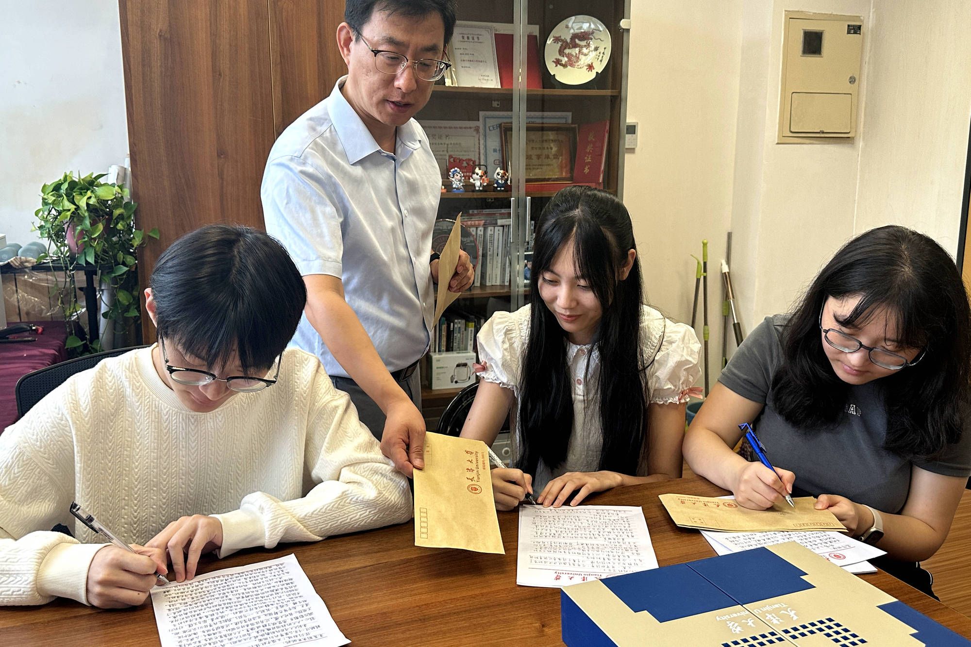 潘静洲教授指导学生们写家书寄给亲人(央广网发 天津大学供图)