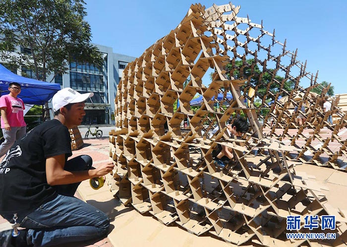 5月24日,首届“建筑师杯”河北-天津建造节在河北工业大学举行,来自天津大学、河北工业大学、天津城建大学、河北工程大学、河北建筑工程学院、石家庄铁道大学等6所津冀地区高校的建筑学专业大一学生以“临时学生街”为主题,以瓦楞纸为主体材料进行创新设计,经过筛选18件作品进行实地搭建,入围参展。此次活动为两地高校建筑专业搭建了相互交流的平台,首次实现专业的“大融合,促发展”。