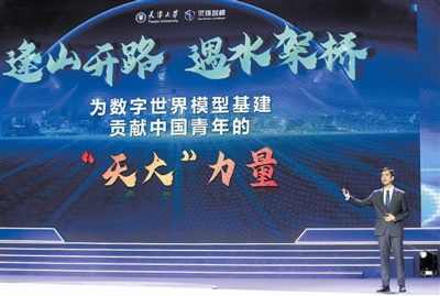 图为获得冠军的天津大学“一键成模——数字世界模型基建轻量供应商”项目路演。 本报记者 张立 摄