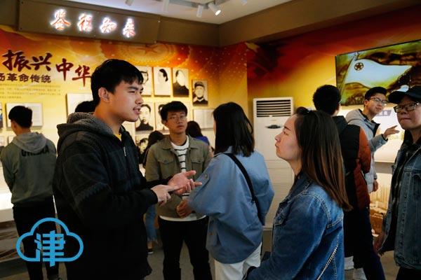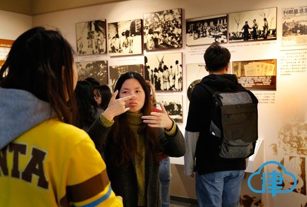 3月21日,位于西青区李七庄街王兰庄花园内天津一二•九学生抗日救亡纪念馆的小院里,一群年轻人,相互用手快速地比划着什么,嘴里不时发出“啊啊”的声音。这是一群来自天津理工大学聋人工学院的聋人大学生,他们还在回味着前一天去周恩来邓颖超纪念馆的所见所“闻”,兴致盎然。针对聋哑人视觉感官发达的特点,天津理工大学聋人工学院将思政课堂搬到了周恩来邓颖超纪念馆、平津战役纪念馆、天津一二•九学生抗日救亡纪念馆等校外场馆。结合当下社会热点,通过图片、视频、实物等史料,生动地向青年学生们展现了我们党、国家和人民的奋斗历程,传递团结、奉献的精神。从历史到现在,将这些在民族和国家奋进之路上前赴后继的人物故事娓娓道来,展现他们荡气回肠的民族大义,还有家庭温情,学生们从中产生广泛的共鸣。