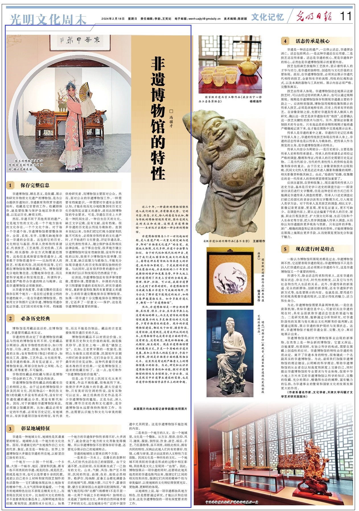 一般认为博物馆所展现的都是过去,非遗博物馆则不然,它还要表现非遗的现在;非遗博物馆不只是告诉人们非遗的过去,还必须展示非遗的今天,这是非遗博物馆又一个重要的特性。