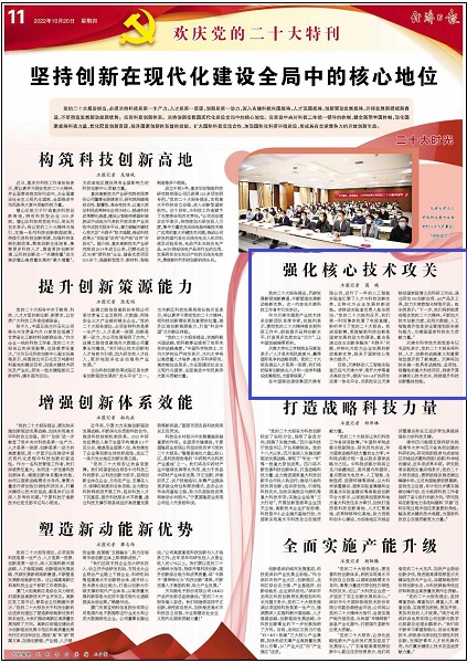 天津市科学技术局党委书记毛劲松表示,党的二十大报告将科技、人才、创新的战略意义和重要地位提升到了新高度。天津将加快实施一批具有战略性、全局性、前瞻性的重大科技项目,持续开展关键核心技术攻关,持续提升科技创新整体效能。