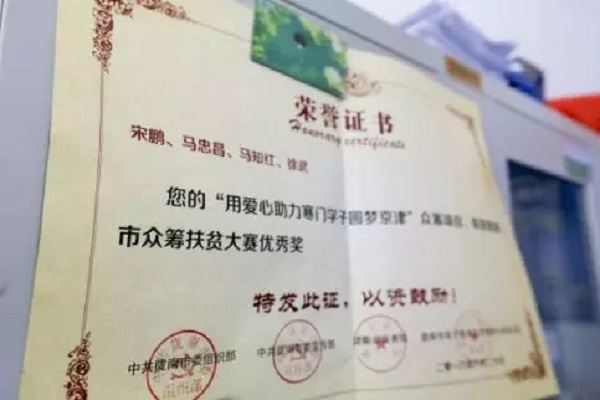 (宋鹏和村干部为村里贫困学子众筹助学)