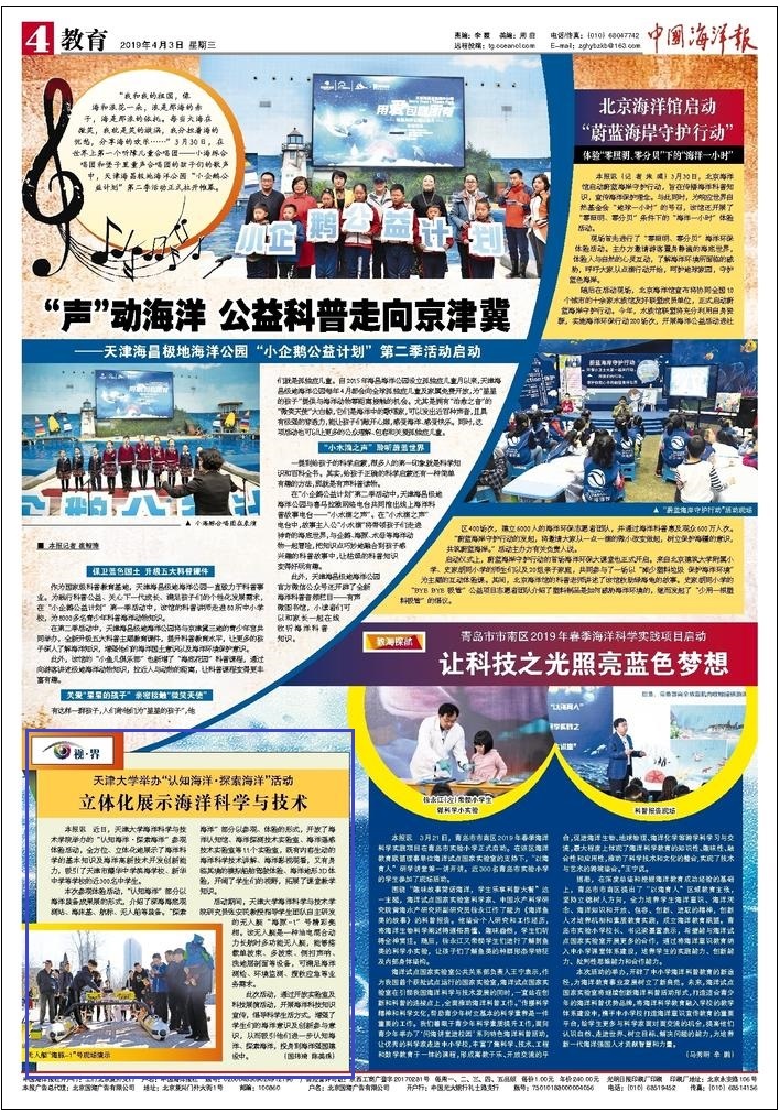 本报讯(通讯员 国玮琦 陈美珠) 近日,天津大学海洋科学与技术学院举办的“认知海洋·探索海洋”参观体验活动,全方位、立体化地展示了海洋科学的基本知识及海洋高新技术开发创新能力,吸引了天津市耀华中学滨海学校、新华中学等学校的近300名中学生。