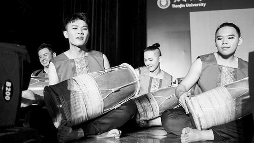 当日,“鼓往津来”国际打击乐汇演在天津大学北洋园校区上演。天津大学二十四节令鼓队、马来西亚“北野觉奏”国际打击乐团、上海交通大学二十四节令鼓队等联合为观众带来一场多元文化融合的视听盛宴。