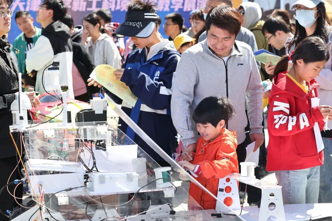 在新工科项目式教学展演现场,智能网联汽车无人驾驶试乘、机器人编队协同表演、柔性电子皮肤健康监测演示等项目,让市民游客惊叹连连。“原来科技可以这样贴近生活!”一名中学生兴奋地说道。全国重点实验室开放日更是掀起科普热潮:“灵犀指”脑控机器人、光量子显示平台等高精尖成果吸引科技爱好者反复追问细节;师生自主搭建的先进设备让参观者直呼“没看够”。郑东图书馆外侧,“百卅天大·科享未来”新技术体验区汇聚AI数字人互动、无人机足球竞技、智能钢琴演奏,科技与艺术的碰撞引发阵阵欢呼;医学院“一站式健康嘉年华”现场,急救技能演示、结核病防治游戏、心理健康盲盒等摊位前排起长队,市民游客在寓教于乐中掌握实用知识。