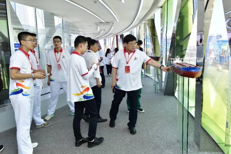 津云新闻讯:6月9日,第九届中国国际“互联网+”大学生创新创业大赛“青年红色筑梦之旅”活动在天津港启动。活动前,来自江苏、湖南、山东等地的师生代表们来到了全球智能化水平最高的天津港北疆港区C段智能化集装箱码头开展“牢记总书记嘱托·勇攀制造业高峰主题实践”活动,进行参观学习。